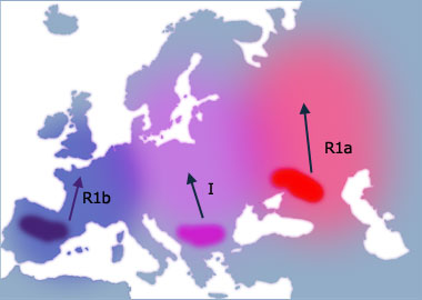 Spread of Haplogroups R1b, I and R1a (12,000 years ago)